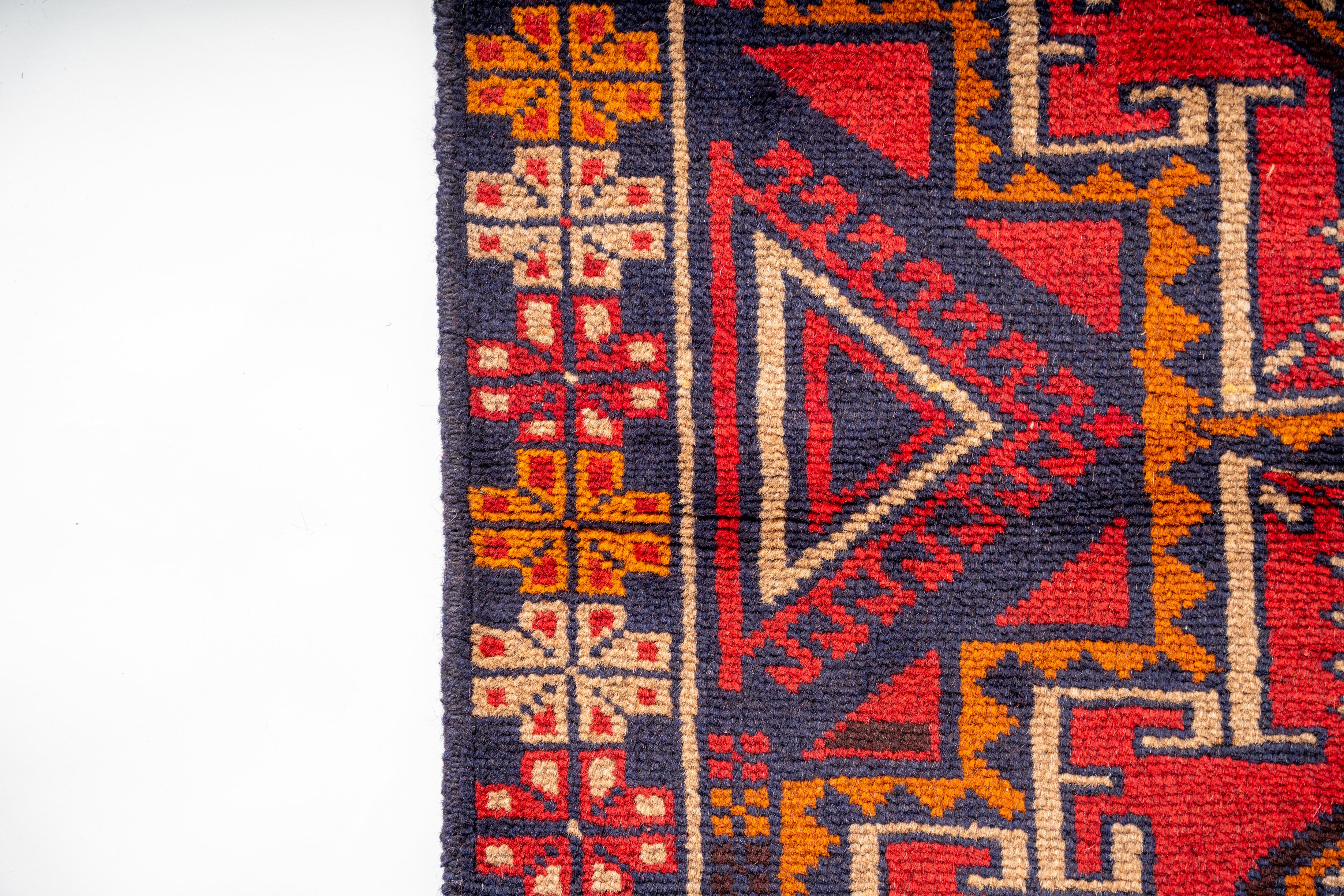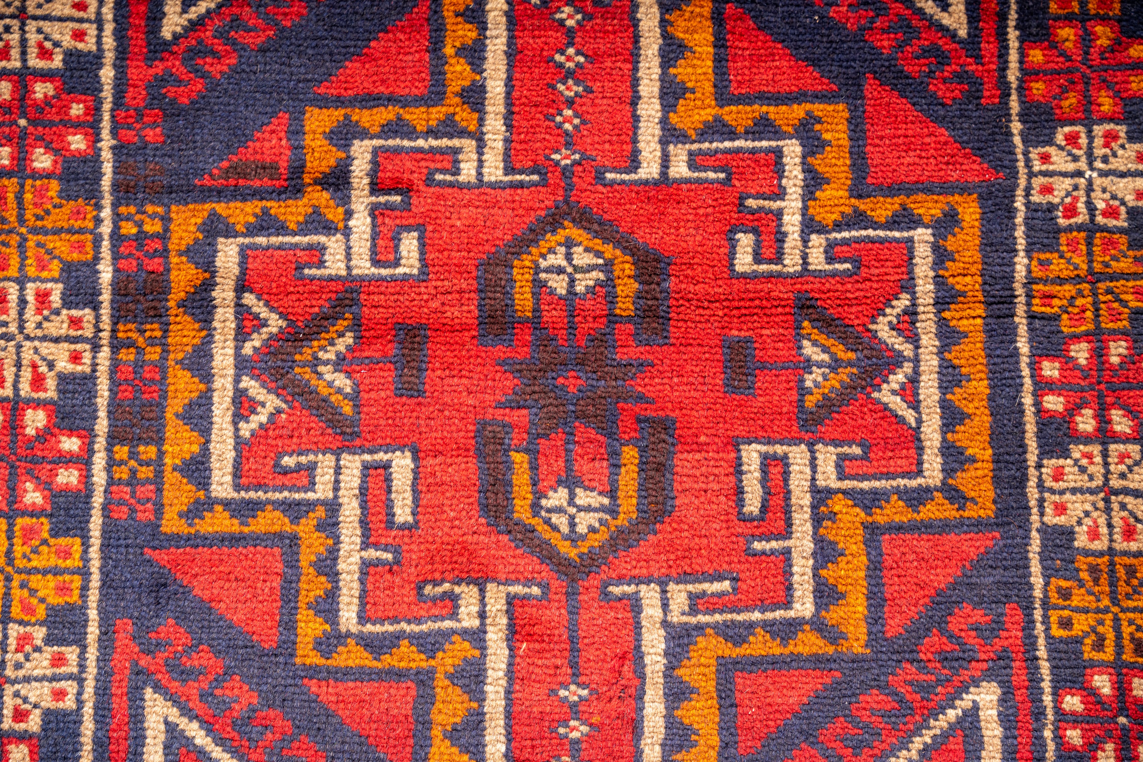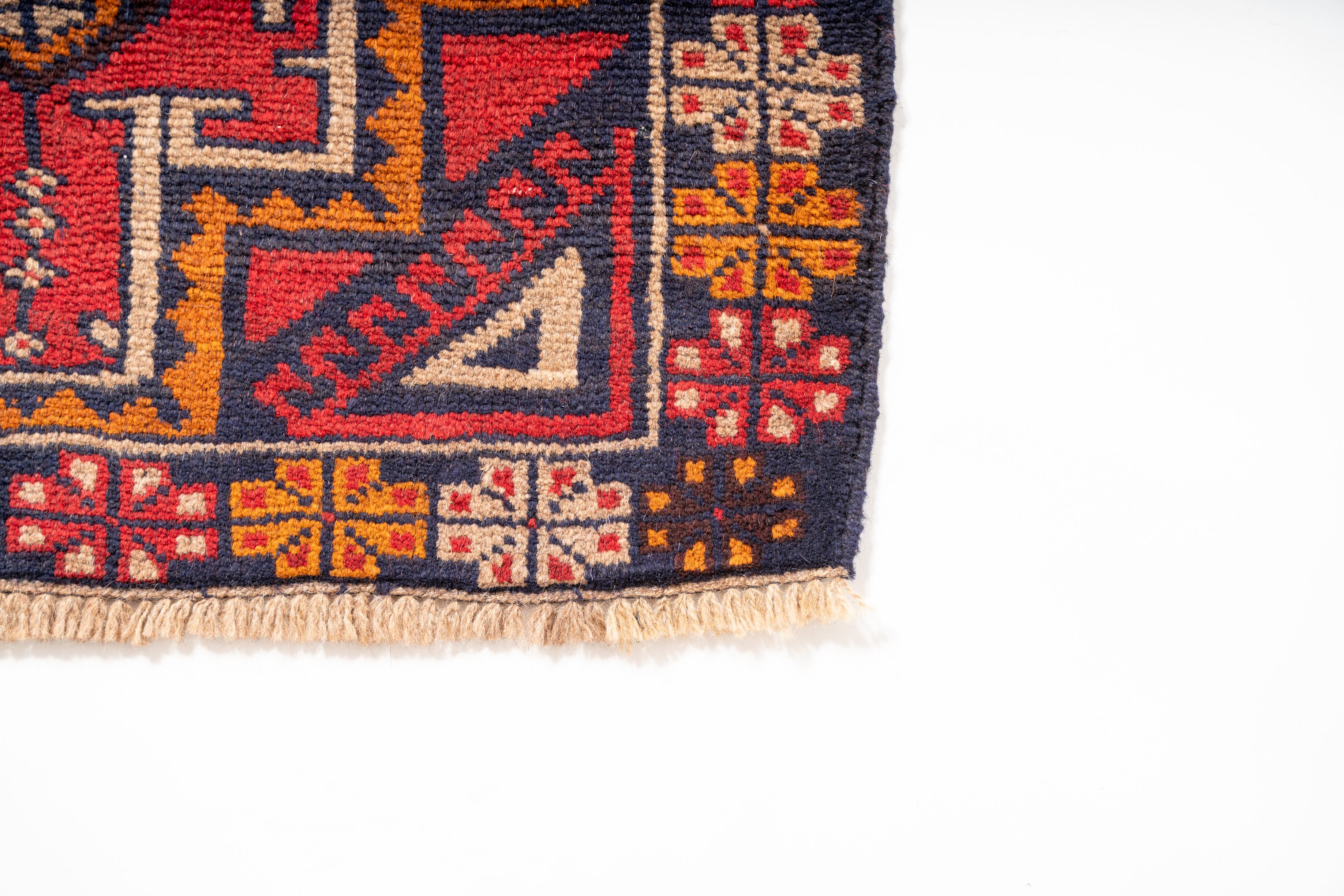 発色の良いウールで、味ある雰囲気のヴィンテージトライバルラグです。
