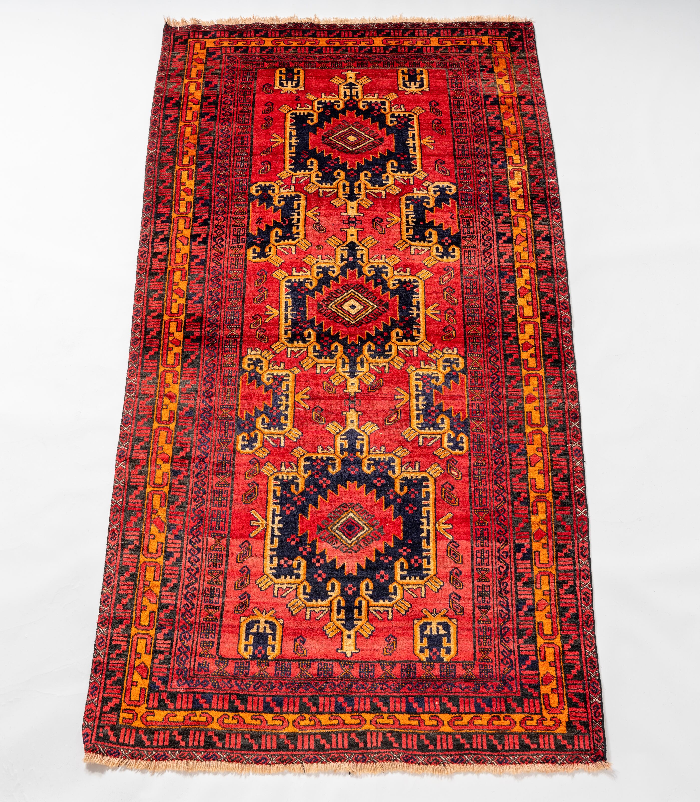 綺麗な色味で、味のある雰囲気のヴィンテージトライバルラグです。