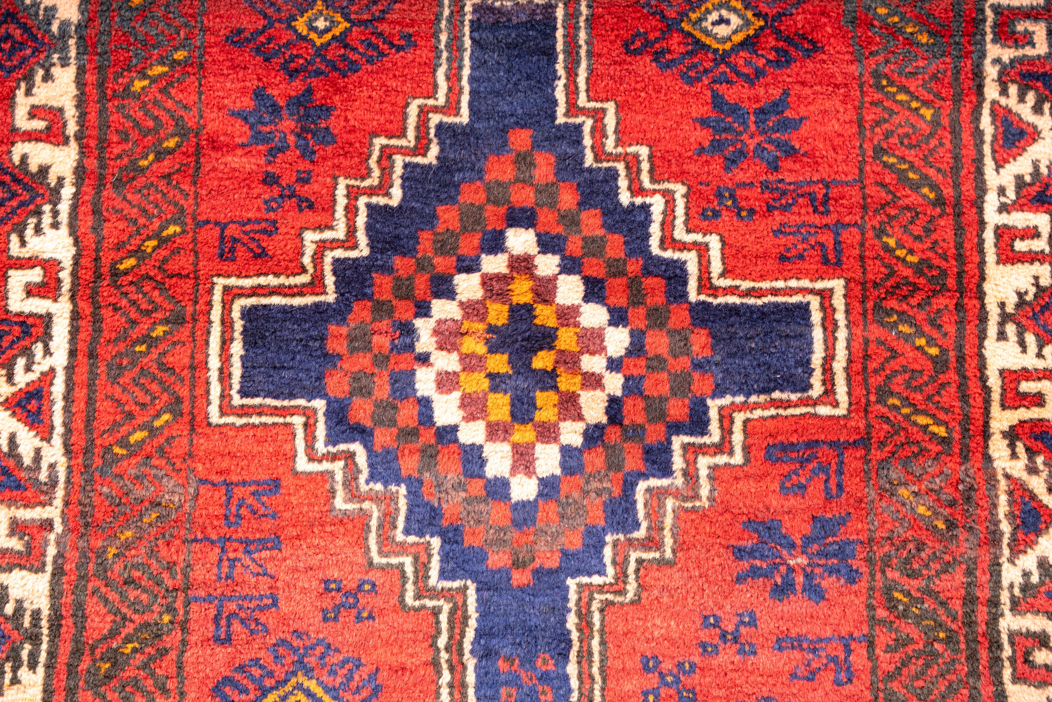 コンディション良好の良い雰囲気のヴィンテージトライバルラグです。