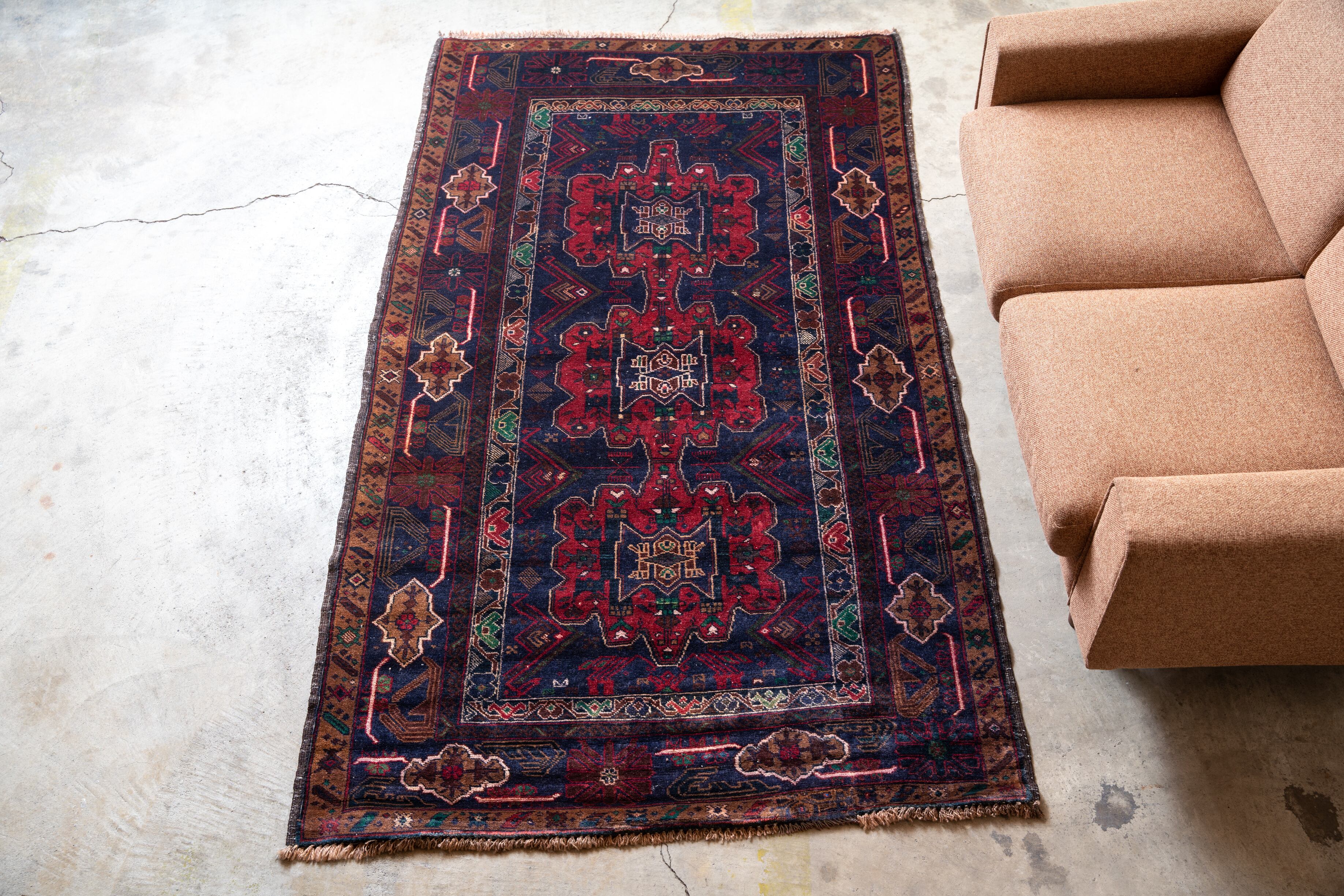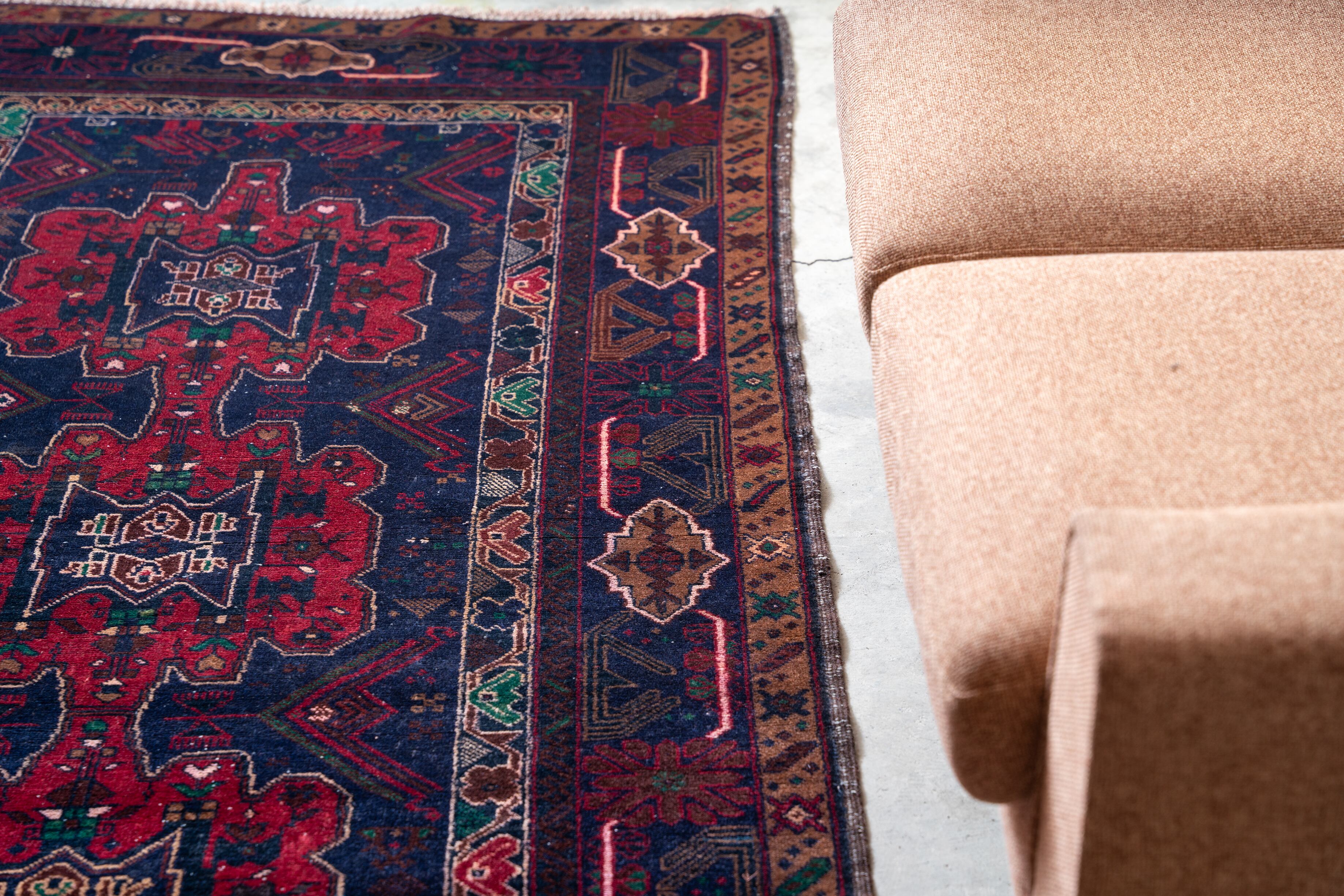 リペアがあるものの状態は良く、味ある雰囲気のヴィンテージトライバルラグです。