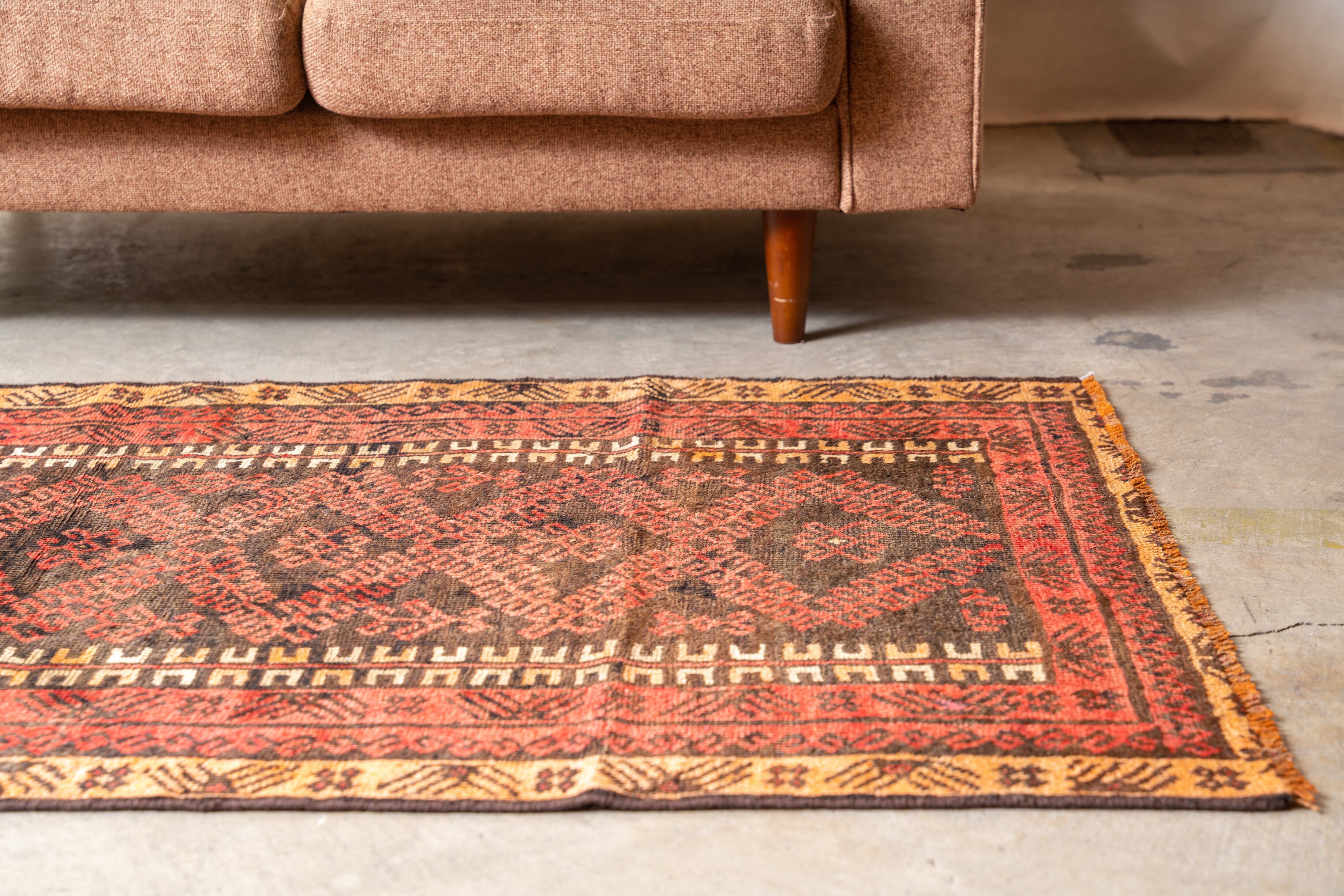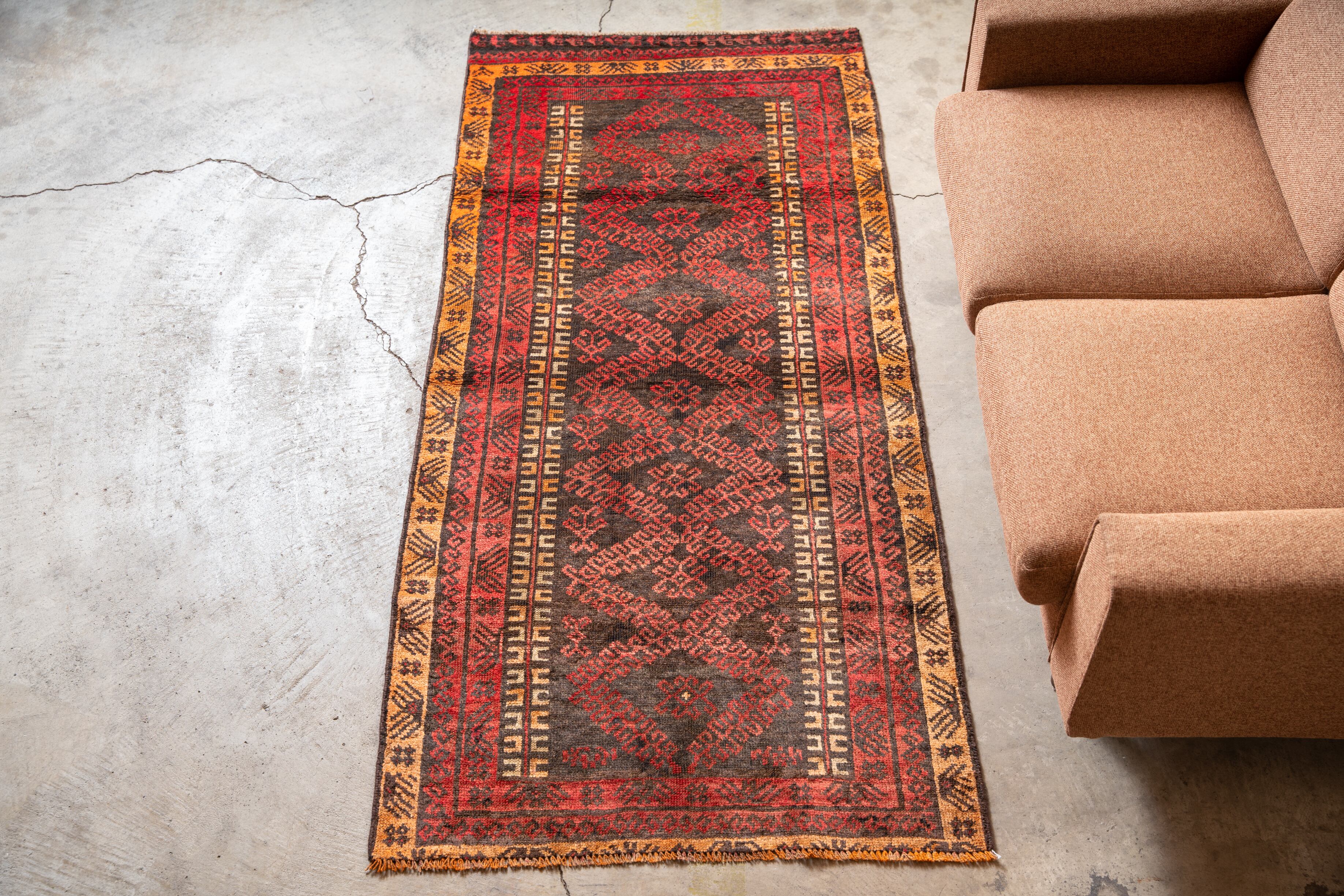 ϕコンディション:擦れていたりリペアされていますが、味のある良いヴィンテージラグのコンディションです。