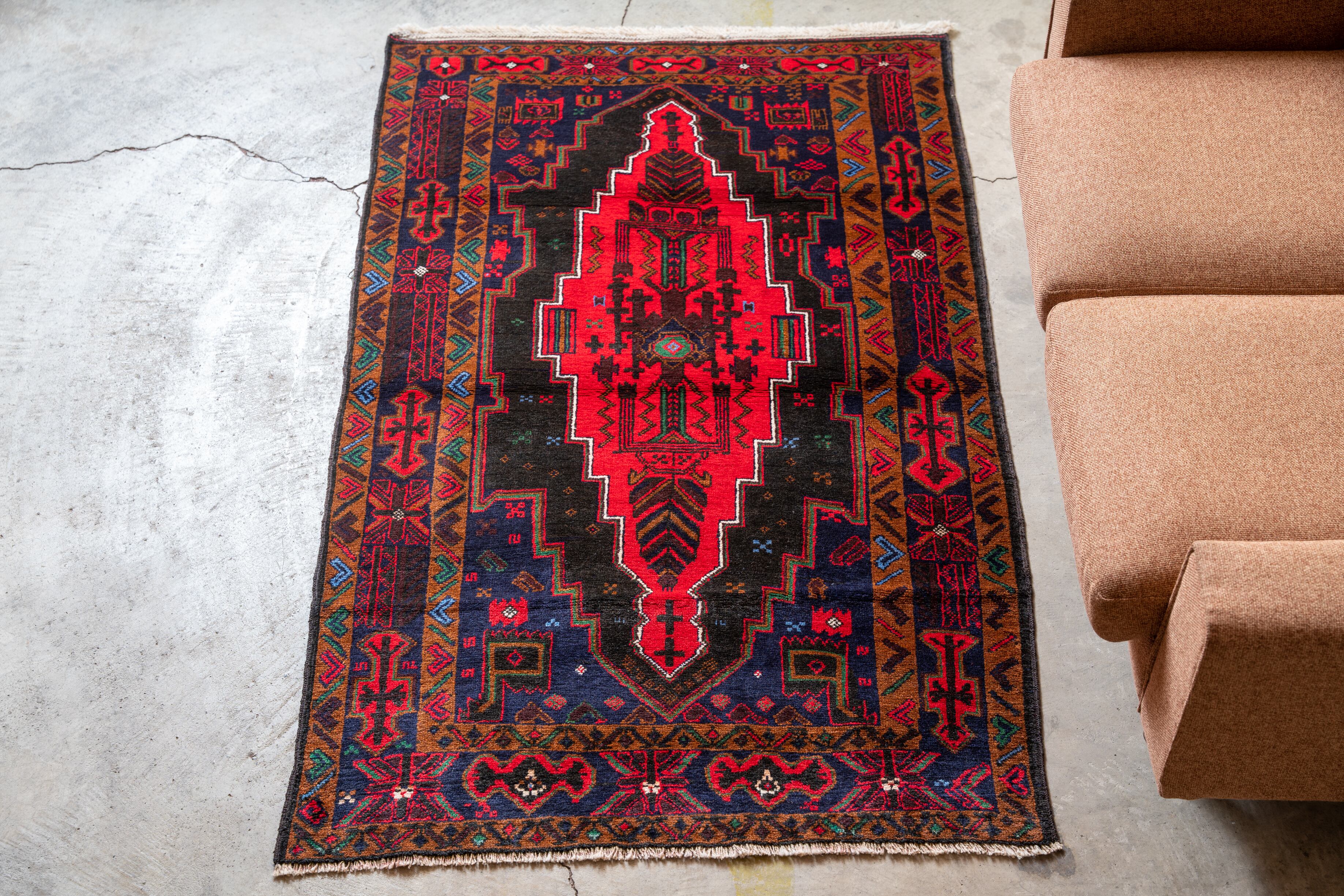 ϕコンディション:軽くコスレていますが、良いヴィンテージラグのコンディションです。